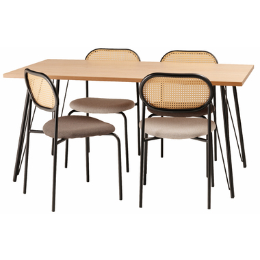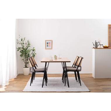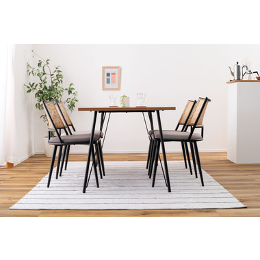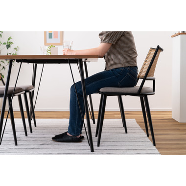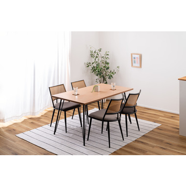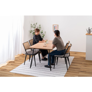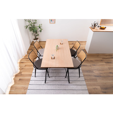 ●温もりのある木目調デザインとシンプルなアイアンが特徴のダイニングテーブル。