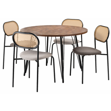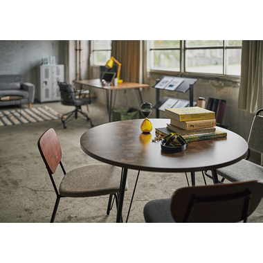 ●温もりのある木目調デザインとシンプルなアイアンが特徴のダイニングテーブル。