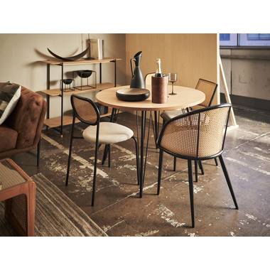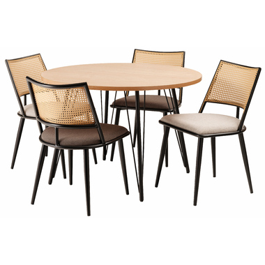 ●温もりのある木目調デザインとシンプルなアイアンが特徴のダイニングテーブル。