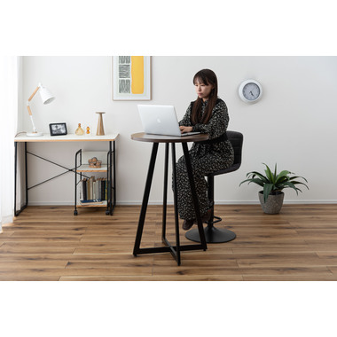 ●温かみのある木目調の天板と、圧迫感を与えにくいスチールの脚部を組み合わせたハイテーブル。