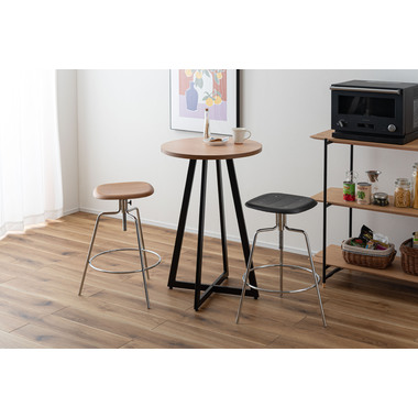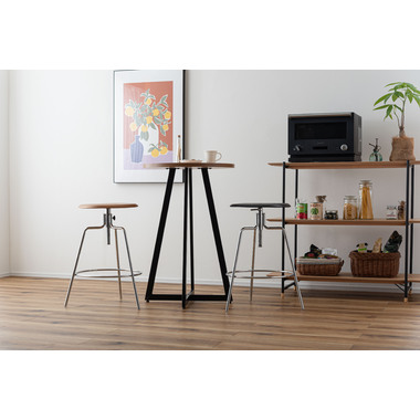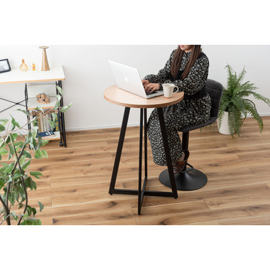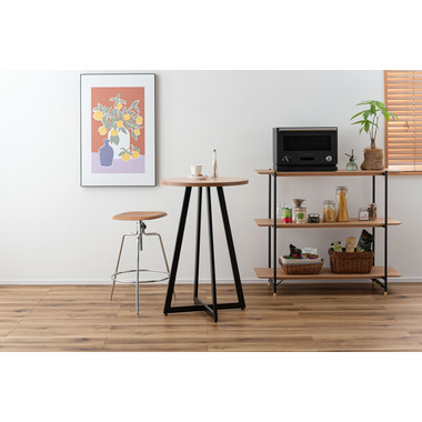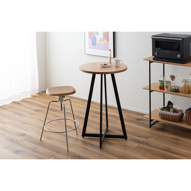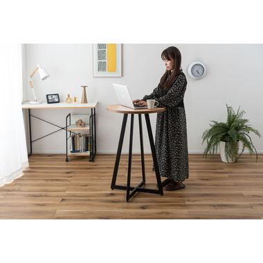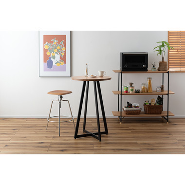 ●温かみのある木目調の天板と、圧迫感を与えにくいスチールの脚部を組み合わせたハイテーブル。