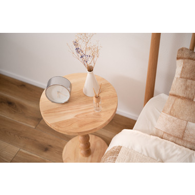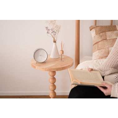 ●優しい空間を作るラウンドデザイン。●ベッドやソファ周りで活躍するサイドテーブル。●支柱の球体が特徴的で置くだけでおしゃれな演出に。●様々なインテリアに合わせることが出来ます。