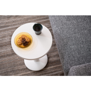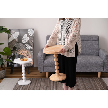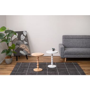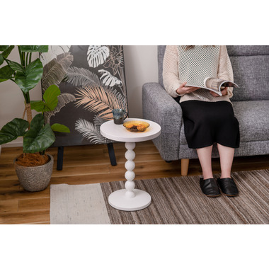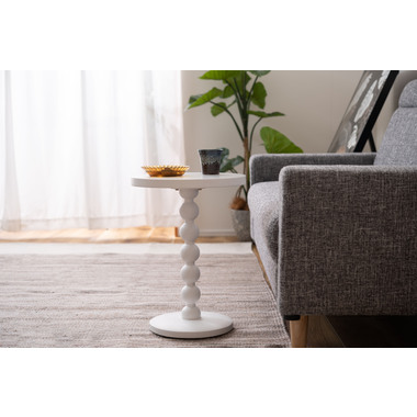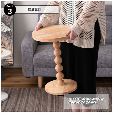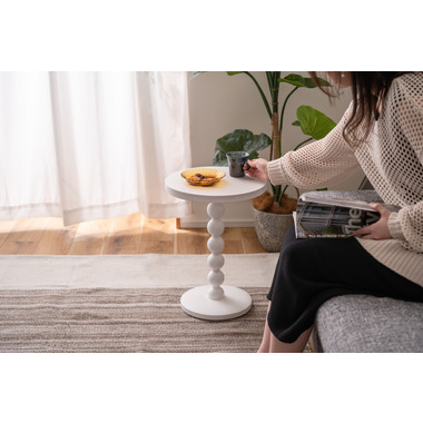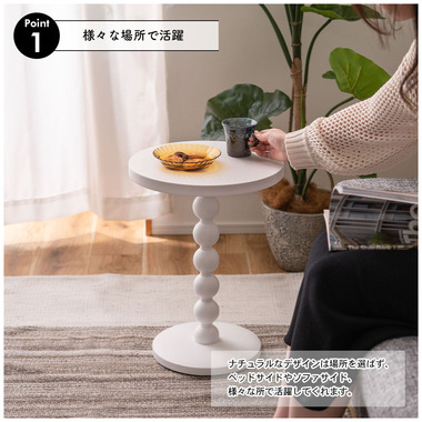 ●優しい空間を作るラウンドデザイン。●ベッドやソファ周りで活躍するサイドテーブル。●支柱の球体が特徴的で置くだけでおしゃれな演出に。●様々なインテリアに合わせることが出来ます。
