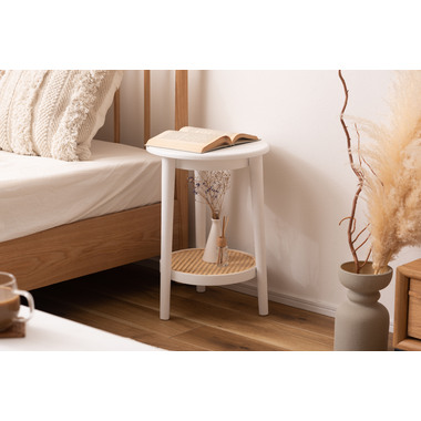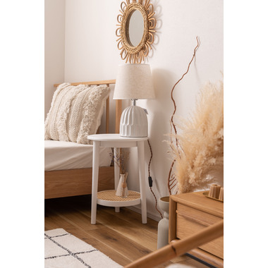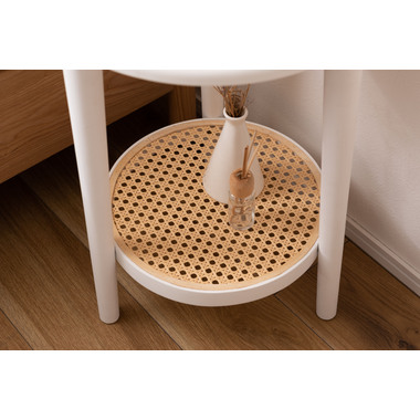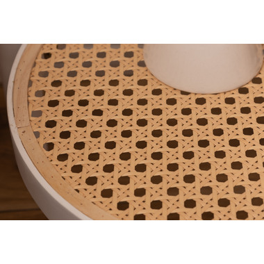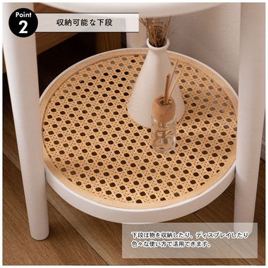 ●ラタン風の装飾を施したトレンド感あるデザイン。●ポリプロピレン素材のラタン調デザインが目を引く丸みを帯びたフォルムのテーブルは、クールなイメージにもガーリーなイメージにもマッチするデザイン。●シリーズ合わせて使用すればお部屋のまとまり感もUPします。●下段に棚が付いているのでちょっとした小物の収納や、ディスプレイなどにも使えて便利。