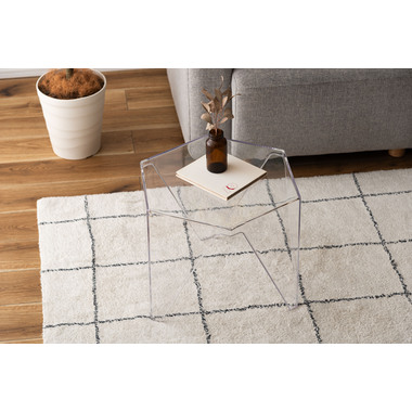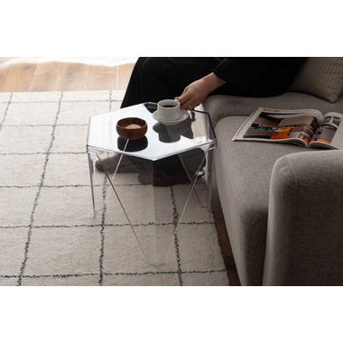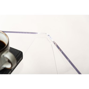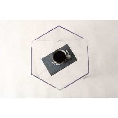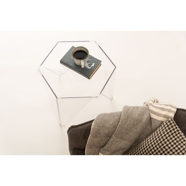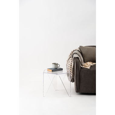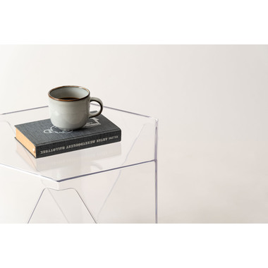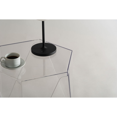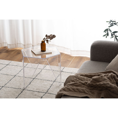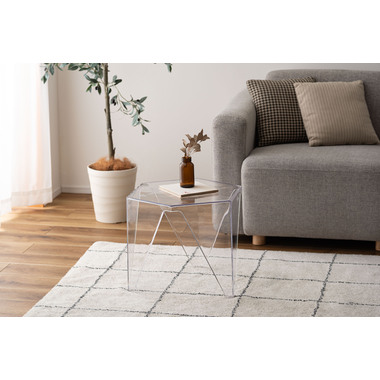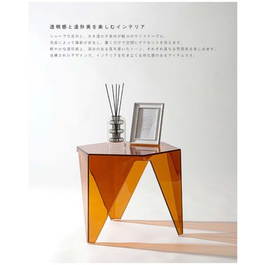 ●シャープな造形と光を透かす素材が魅力のサイドテーブル。