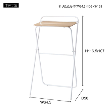 W64.5×D56×H116.5/107(折りたたみ時:W64.5 x D6 x H128cm)