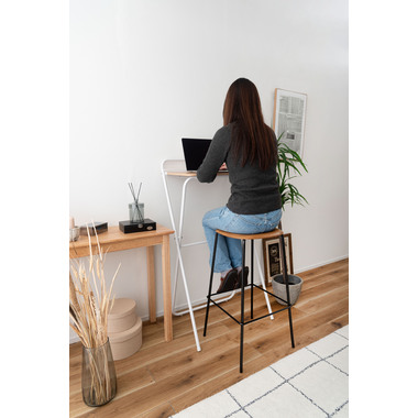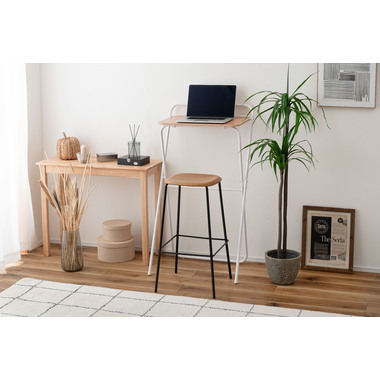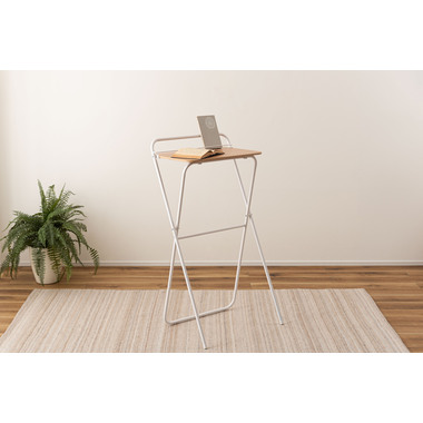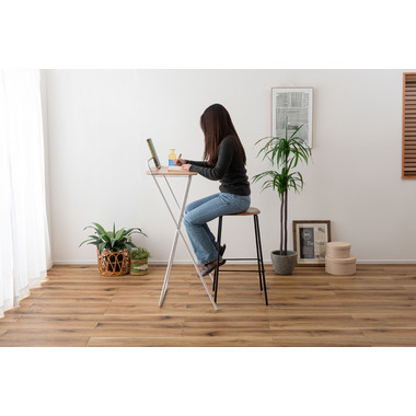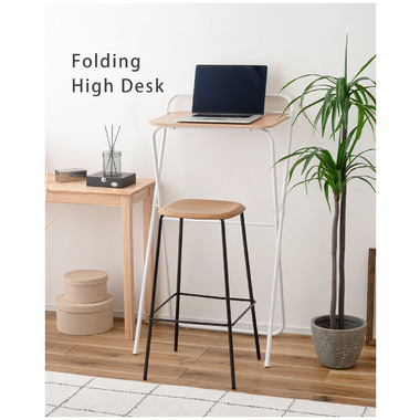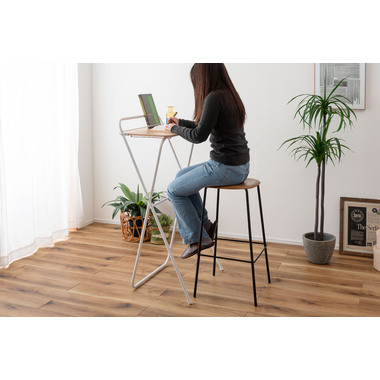 ●シャープなスチールフレームと木目調天板を組み合わせた、スタイリッシュなフォールディングハイデスク。