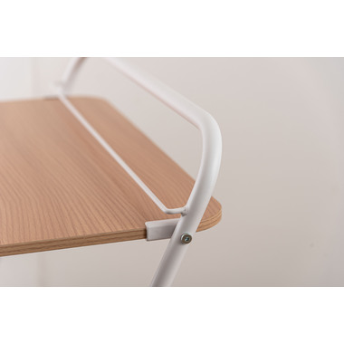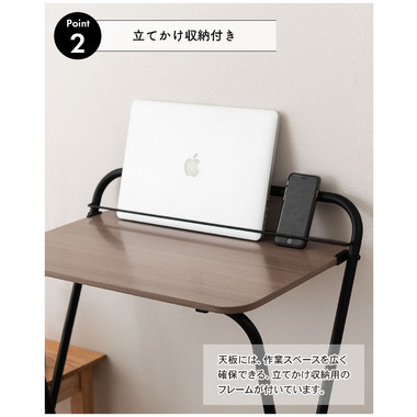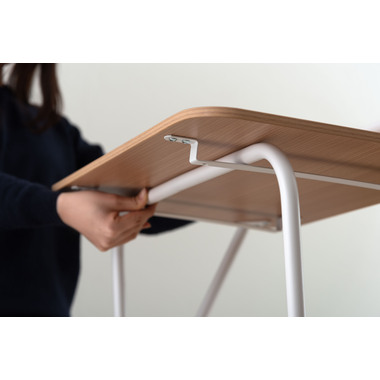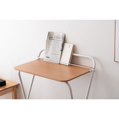 ●天板にはタブレットや本を立てかけられるバーが付いているので、シーンを問わず使える実用的なアイテム。