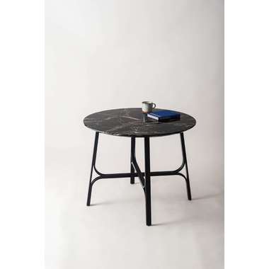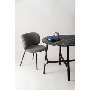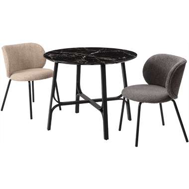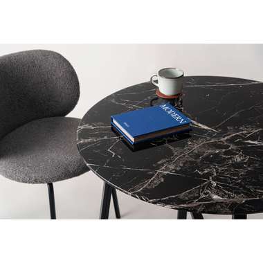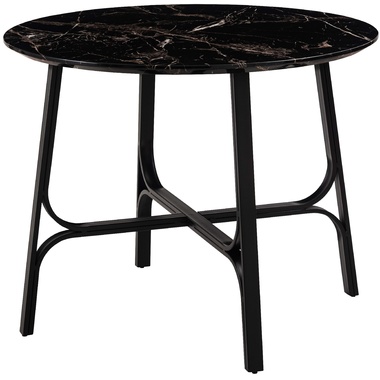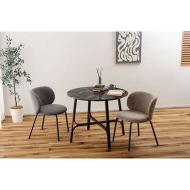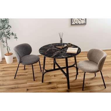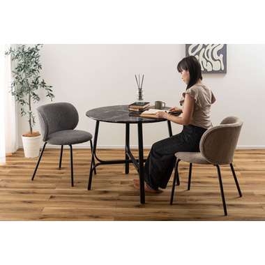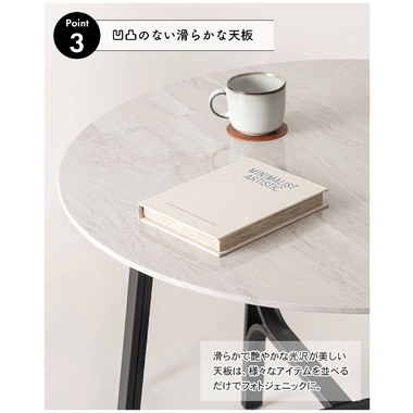●美しい石目調の天板と、繊細なカーブを描くスチール脚が印象的なラウンドテーブル。