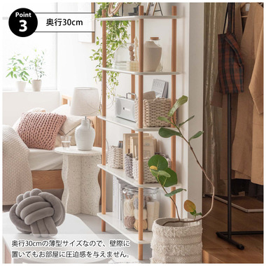 ●ホワイトの棚と天然木のナチュラルカラーな支柱が優しい印象を与えてくれる、3サイズのラックです。使う場所を選ばず様々な場所で活躍してくれるラックは、オープンタイプなので、壁面に設置するだけでなく空間の間仕切りとしても、抜け感を与えながら圧迫感無く使用する事が出来ます。●ねじ込み式で組立も簡単。お好みで高さを変えて使用する事も可能です。