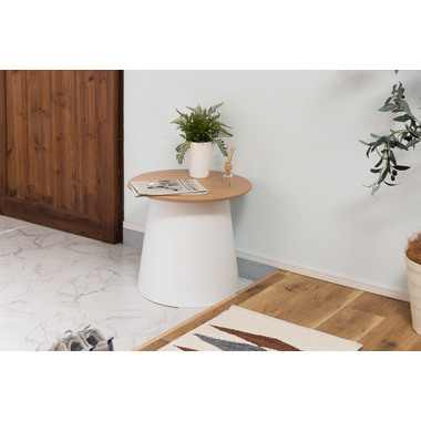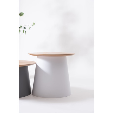 天板と脚部の異素材の組み合わせが特徴的なラウンドテーブル。
