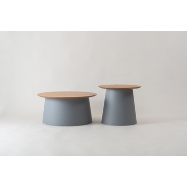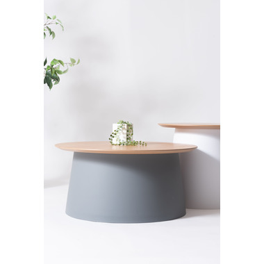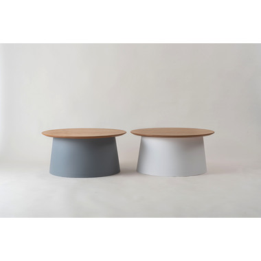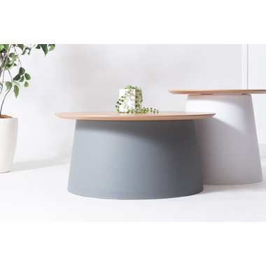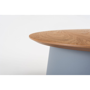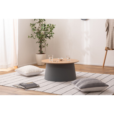 天板と脚部の異素材の組み合わせが特徴的なラウンドテーブル。