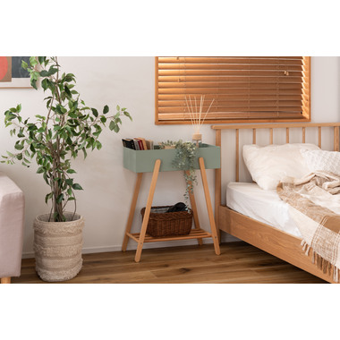 ●プランター下段には天然木の棚が付いているので小物類の収納に便利。