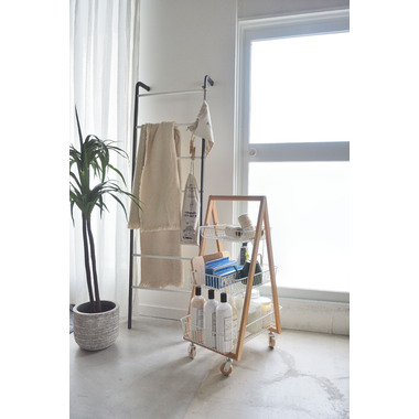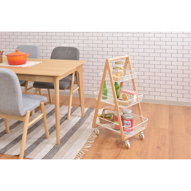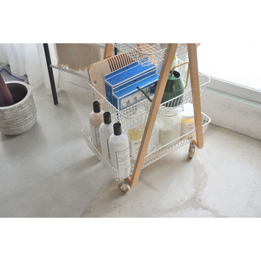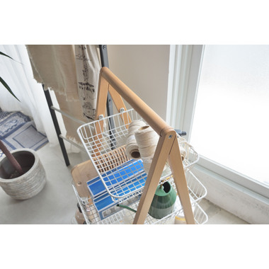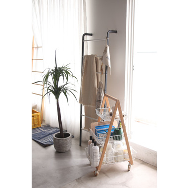 天然木とスチールの優しい色合いが、北欧ナチュラルなテイストを演出するバスケットワゴン”Sylph”。通気性の良いメッシュ仕様&キャスター付きなので、幅広いシーンで活躍します。