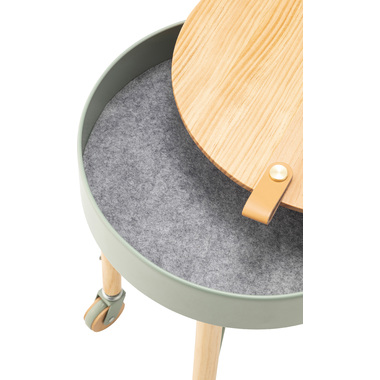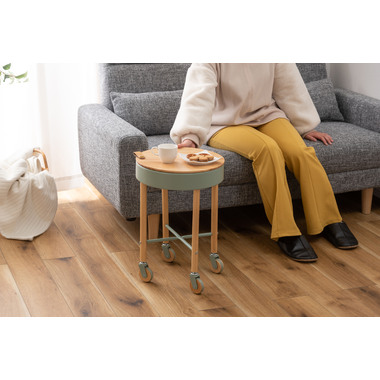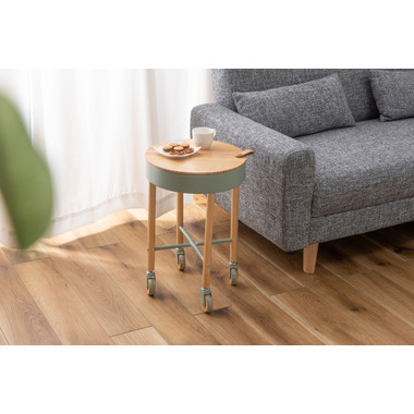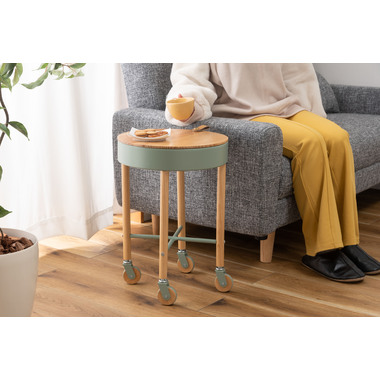 ●大人気の「Sylph」シリーズにサイドテーブルが登場しました。●キャスター付きで移動も簡単、さらに収納もできて使い勝手抜群のテーブルです。●天板には天然木パインを使用。ハッキリした木目が特徴的で、カントリー調家具からシンプル・ナチュラル系家具まで幅広く使われる人気のある天然木。●天板を外すと中は収納スペース。●収納スペースの底面にはフェルトを敷いてあるので、アクセサリー類を入れても傷防止になり安心です。●天板の縁部分にはアクセントにもなるレザー素材の取っ手付き。●キャスターの側面部分にも天然木を使用した、細部のデザインにもこだわったサイドテーブル。
