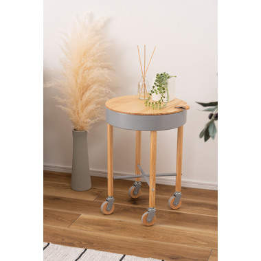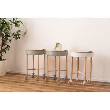●大人気の「Sylph」シリーズにサイドテーブルが登場しました。●キャスター付きで移動も簡単、さらに収納もできて使い勝手抜群のテーブルです。●天板には天然木パインを使用。ハッキリした木目が特徴的で、カントリー調家具からシンプル・ナチュラル系家具まで幅広く使われる人気のある天然木。●天板を外すと中は収納スペース。●収納スペースの底面にはフェルトを敷いてあるので、アクセサリー類を入れても傷防止になり安心です。●天板の縁部分にはアクセントにもなるレザー素材の取っ手付き。●キャスターの側面部分にも天然木を使用した、細部のデザインにもこだわったサイドテーブル。