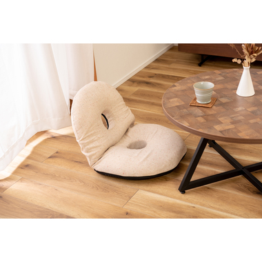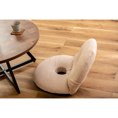 ●ふだん使いにちょうどいい、ドーナツ型のかわいいフロアチェア。●座面や背もたれは、ドーナツのように中央に穴が開いたデザイン。座った時の圧迫感を緩和し、お尻にかかる負担をやわらげてくれるので長時間の使用に適したフロアチェア。●座面には低反発ウレタンを使用しているので、しっとりと柔らかくフィットした座り心地。●また座面はほど良い高さなので、ごろ寝枕としても使えます。●簡単に折りたたむ事ができ、軽量タイプなので持ち運びラクラクで収納も場所を取りません。