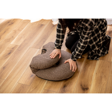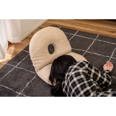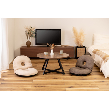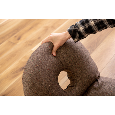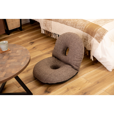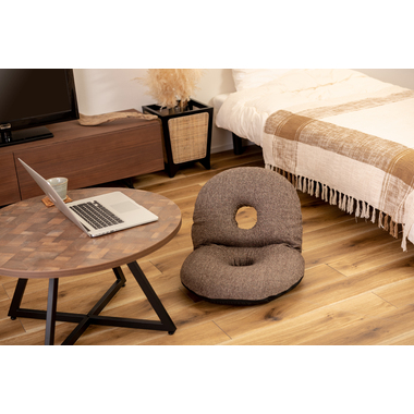 ●ふだん使いにちょうどいい、ドーナツ型のかわいいフロアチェア。●座面や背もたれは、ドーナツのように中央に穴が開いたデザイン。座った時の圧迫感を緩和し、お尻にかかる負担をやわらげてくれるので長時間の使用に適したフロアチェア。●座面には低反発ウレタンを使用しているので、しっとりと柔らかくフィットした座り心地。●また座面はほど良い高さなので、ごろ寝枕としても使えます。●簡単に折りたたむ事ができ、軽量タイプなので持ち運びラクラクで収納も場所を取りません。