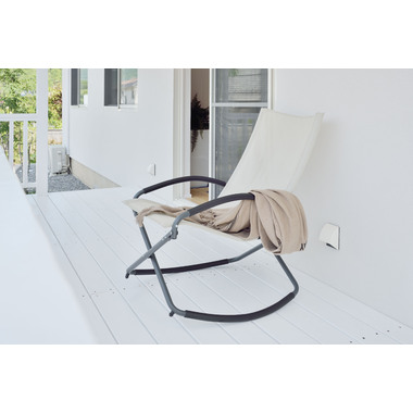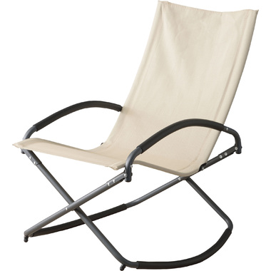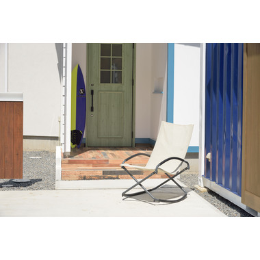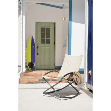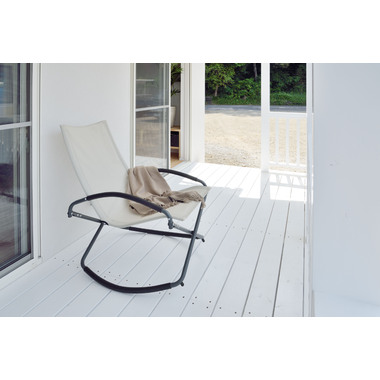 ゆらゆら揺れる、折りたたみ式ロッキングチェア 室内での使用はもちろんのこと、BBQやキャンプなどのアウトドアシーンでも大活躍してくれる折りたたみ式のロッキングチェアです。