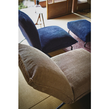 コーデュロイ生地はやわらかく優しい手触り、スチール脚でスッキリとした印象