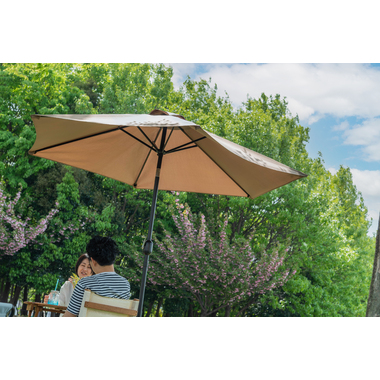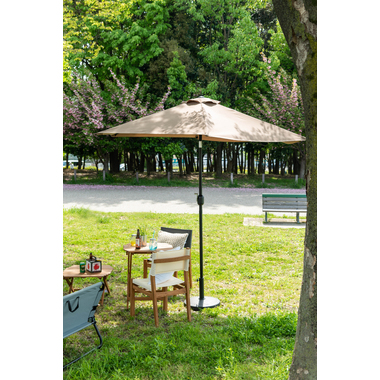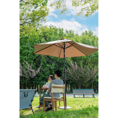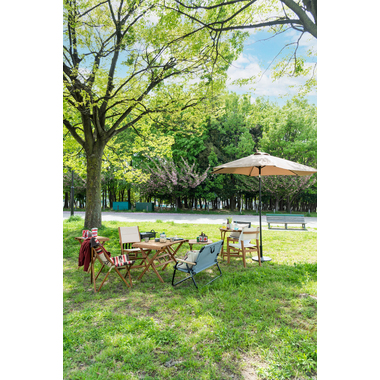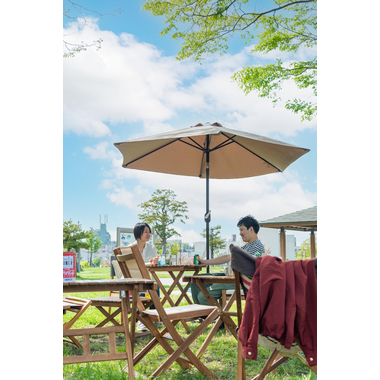 RKC-527:●お家のお庭やテラスでオシャレに快適カフェ空間。●支柱のボタンでパラソルの角度を調整することができるので、効果的に日差しをカットすることができて便利。●傘の開閉はハンドルをクルクル回すだけなので、楽に開閉できます。●傘部分と支柱部分をワンタッチで接続する簡単タイプなので、持ち運びもラクラク。●アウトドアやキャンプにも最適のパラソルです。