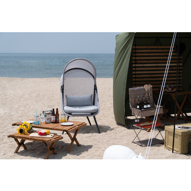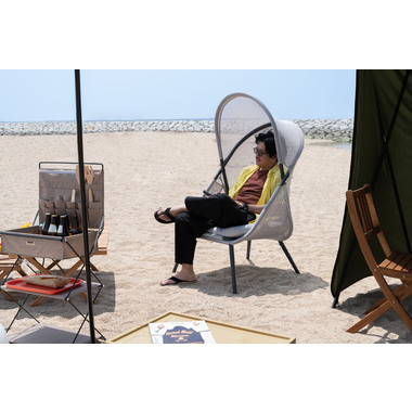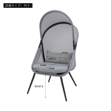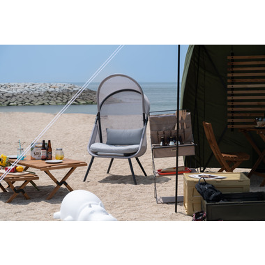 ●風を通すメッシュ素材と日よけのルーフ付きで屋外でも快適に使用することができます。●使わないときは折りたたむこともできるので場所を取りません。●クッションと座面は取り外しが可能です。●座り心地が良く、包み込まれた感じが自分だけの空間を作り出しますのでリラックスできます。●屋外での使用はもちろん、オフィスのリフレッシュルーム用リラックスチェアとしてもおすすめ。