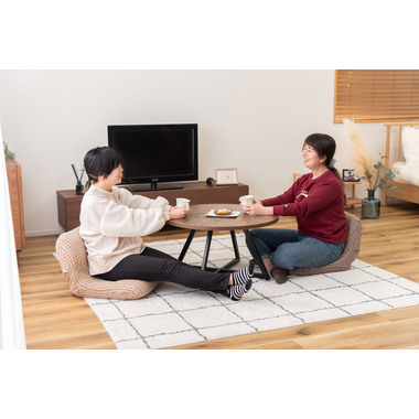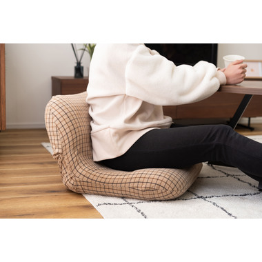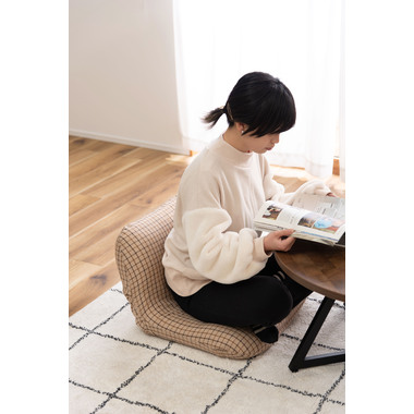 ●丸いフォルムとチェック柄がかわいいフロアチェア。●S字カーブの構造が身体にしっかりフィットし、ゆったりとくつろぐことができます。●背もたれを前に倒せばコンパクトサイズに。持ち運びがしやすく省スペース収納にも便利。●ワイドタイプなのでのんびりリラックスできるフロアチェア。●温もりのある優しい手触りのファブリック生地を使用。●背面も同じチェック柄の生地で仕上げてあるので、他のインテリアとの相性も良くしっくりと馴染みます。
