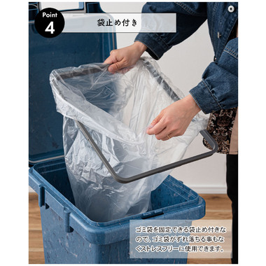 ●袋止め付きなのでゴミ袋がずれ落ちる事もなくしっかりと固定。