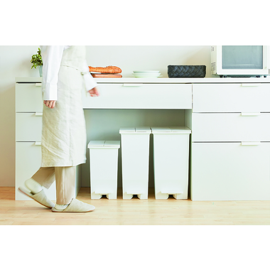 ●フタが両サイドに分割して開く観音開きタイプなので、背の低い棚下やキッチン周りにおいても快適に使えます。