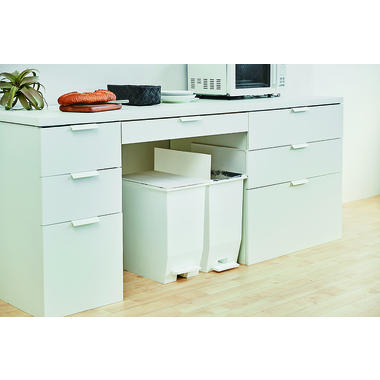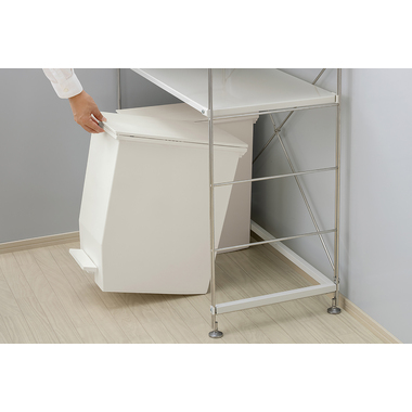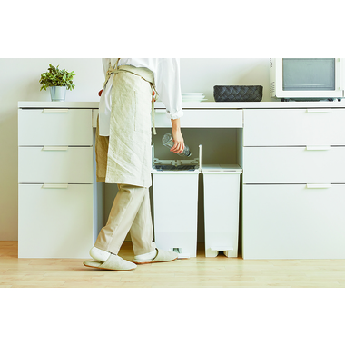 ●フタが両サイドに分割して開く観音開きタイプなので、背の低い棚下やキッチン周りにおいても快適に使えます。