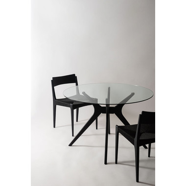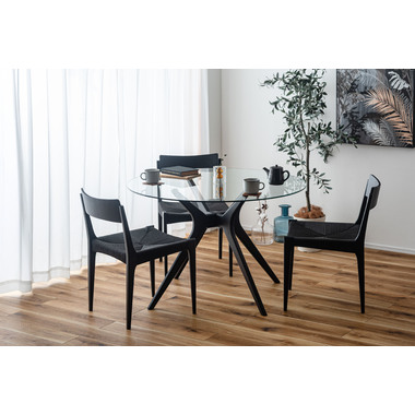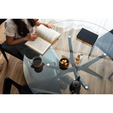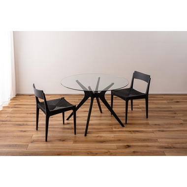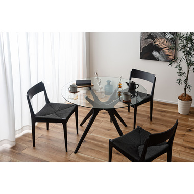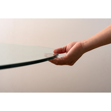 ●オブジェのように洗練されたデザインが魅力のラウンドガラステーブル。
