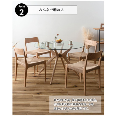 ●円形天板なので、どの場所でも自由に座れます。