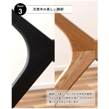 ●ガラス天板はオーク材との相性も良く、それぞれの美しさを引き立てます。
