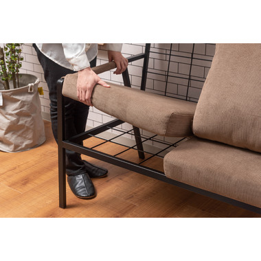 ●暖かみのあるコーデュロイとクールなスチールの組み合わせが、空間をモダンでオシャレに演出。●座面が広くゆったりしており、座り心地も抜群です。●弾力のある背面クッションと、程よい硬さで座りやすい座面クッションのリラックスできるソファ。●アームカバーは取り外し可能。●クッションは張り込みタイプではないので、好きな位置にクッションを移動させてくつろぐこともできます。