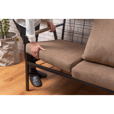 ●暖かみのあるコーデュロイとクールなスチールの組み合わせが、空間をモダンでオシャレに演出。●座面が広くゆったりしており、座り心地も抜群です。●弾力のある背面クッションと、程よい硬さで座りやすい座面クッションのリラックスできるソファ。●アームカバーは取り外し可能。●クッションは張り込みタイプではないので、好きな位置にクッションを移動させてくつろぐこともできます。