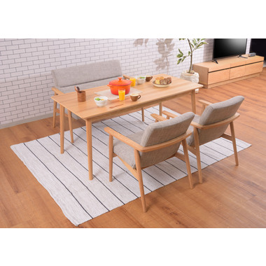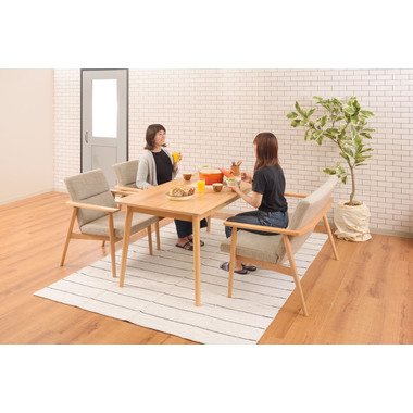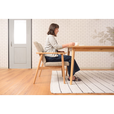 ●木目の美しいアッシュ無垢材を使用した、ナチュラルテイストのダイニングチェア&ソファ。●全体的に細くすっきりとしたデザインで、新色のチャコールグレーと定番のベージュカラーの2色を展開。●アーム付きのダイニングは、食事時もゆったりとした時間を過ごせる空間に仕上がります。