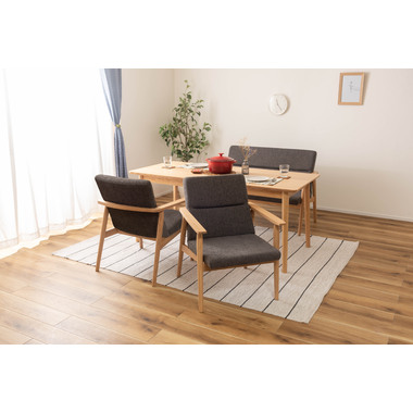 ●木目の美しいアッシュ無垢材を使用した、ナチュラルテイストのダイニングチェア&ソファ。●全体的に細くすっきりとしたデザインで、新色のチャコールグレーと定番のベージュカラーの2色を展開。●アーム付きのダイニングは、食事時もゆったりとした時間を過ごせる空間に仕上がります。
