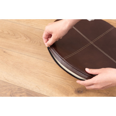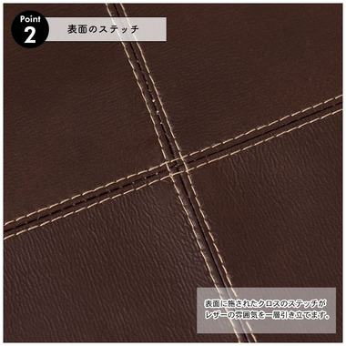 ●ヴィンテージな雰囲気のシートクッション。本革を断裁した時に残る部分を再生利用した環境に優しい素材「ボンデッドレザー」を使用。チェアやベンチの上で過ごす時間を快適にグレードアップしてくれるアイテムです。●風合いのあるボンデッドレザー仕様です。●表面に施されたステッチが、レザーの雰囲気を一層引き立てます。●チェアでの使用はもちろん、床置きでの使用もオススメ。