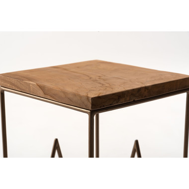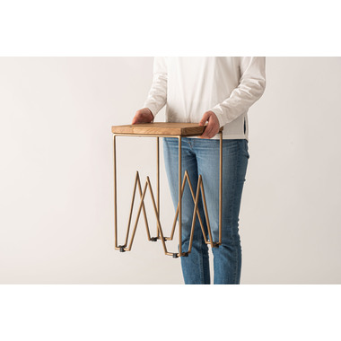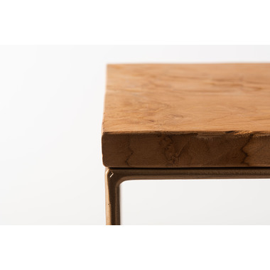 製材、研磨、編み込み、組み立て、塗装などのほぼすべての作業工程を職人の手作業で作られたハンドメイド商品です。色の濃淡や形状、サイズなど同一規格の量産にはない特有の個性が魅力です。ハンドメイドの個性や感触、風合いなどに愛着を持って寄り添い、ご使用いただけると幸いです。ナチュラルチークの風合いとゴールドスチール。異素材の趣ある組み合わせです。