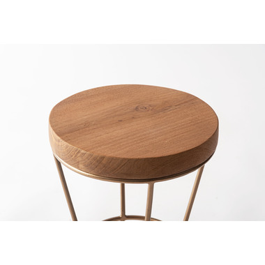 製材、研磨、編み込み、組み立て、塗装などのほぼすべての作業工程を職人の手作業で作られたハンドメイド商品です。色の濃淡や形状、サイズなど同一規格の量産にはない特有の個性が魅力です。ハンドメイドの個性や感触、風合いなどに愛着を持って寄り添い、ご使用いただけると幸いです。ナチュラルチークの風合いとゴールドスチール。異素材の趣ある組み合わせです。