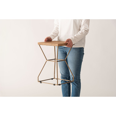 製材、研磨、編み込み、組み立て、塗装などのほぼすべての作業工程を職人の手作業で作られたハンドメイド商品です。色の濃淡や形状、サイズなど同一規格の量産にはない特有の個性が魅力です。ハンドメイドの個性や感触、風合いなどに愛着を持って寄り添い、ご使用いただけると幸いです。ナチュラルチークの風合いとゴールドスチール。異素材の趣ある組み合わせです。