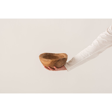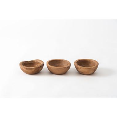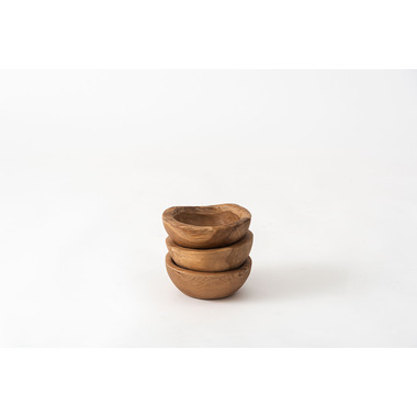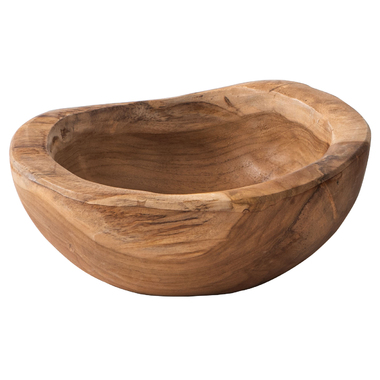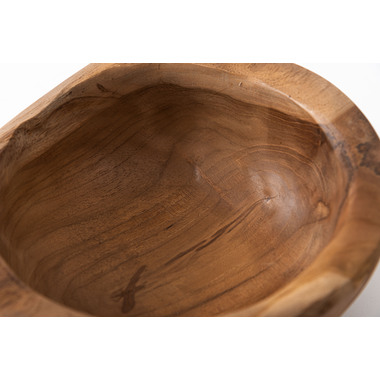 製材、研磨、編み込み、組み立て、塗装などのほぼすべての作業工程を職人の手作業で作られたハンドメイド商品です。色の濃淡や形状、サイズなど同一規格の量産にはない特有の個性が魅力です。ハンドメイドの個性や感触、風合いなどに愛着を持って寄り添い、ご使用いただけると幸いです。チーク材をくり抜いて作られたお皿。不揃いの木材をそのまま活かした形状と風合いは個性豊かな表情が魅力です。