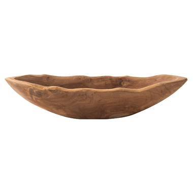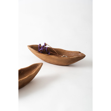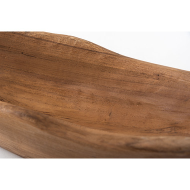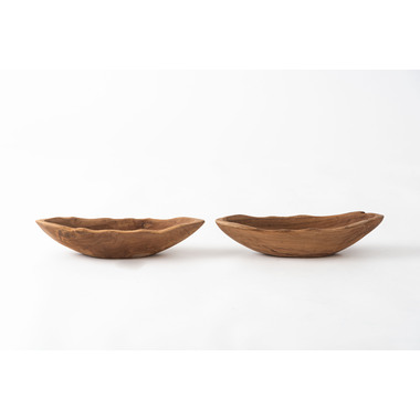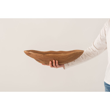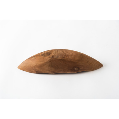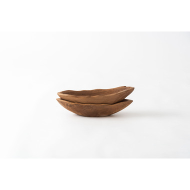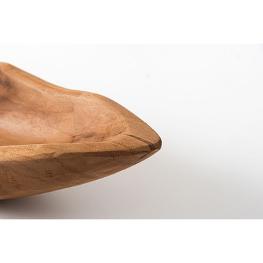 製材、研磨、編み込み、組み立て、塗装などのほぼすべての作業工程を職人の手作業で作られたハンドメイド商品です。色の濃淡や形状、サイズなど同一規格の量産にはない特有の個性が魅力です。ハンドメイドの個性や感触、風合いなどに愛着を持って寄り添い、ご使用いただけると幸いです。チーク材をくり抜いて作られたお皿。不揃いの木材をそのまま活かした形状と風合いは個性豊かな表情が魅力です。