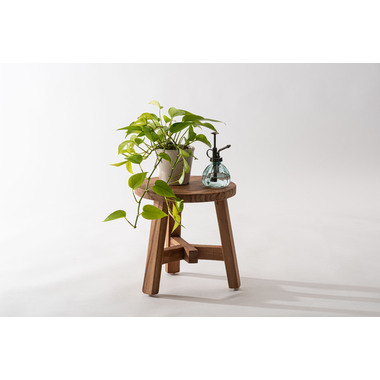 製材、研磨、編み込み、組み立て、塗装などのほぼすべての作業工程を職人の手作業で作られたハンドメイド商品です。色の濃淡や形状、サイズなど同一規格の量産にはない特有の個性が魅力です。ハンドメイドの個性や感触、風合いなどに愛着を持って寄り添い、ご使用いただけると幸いです。銘木チーク材で作られたスツール。プランタースタンドやサイドテーブルとしても