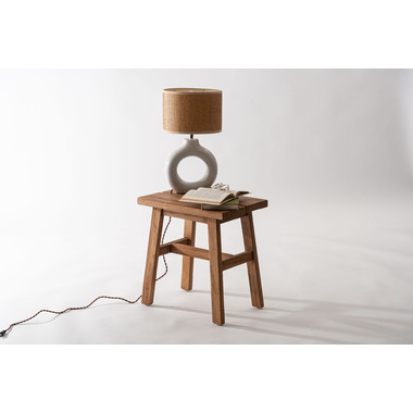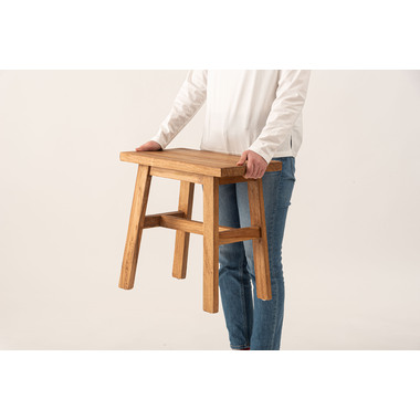 製材、研磨、編み込み、組み立て、塗装などのほぼすべての作業工程を職人の手作業で作られたハンドメイド商品です。色の濃淡や形状、サイズなど同一規格の量産にはない特有の個性が魅力です。ハンドメイドの個性や感触、風合いなどに愛着を持って寄り添い、ご使用いただけると幸いです。銘木チーク材で作られたスツール。プランタースタンドやサイドテーブルとしても