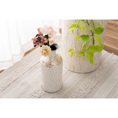 透明感と独特な光沢が演出する,マザーオブパールシェルインテリアシリーズ マザーオブパールはその名の通り真珠を育む貝で真珠のような虹色に輝く光沢が特徴です。古くから時計の文字盤や楽器、雑貨の装飾に使われてきました。一点一点丁寧に手貼りされ、シンプルで上品な印象に仕上げることで現代のインテリアにマッチするようデザインしました。