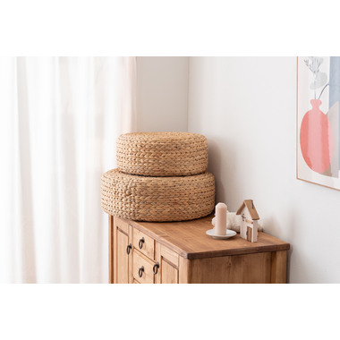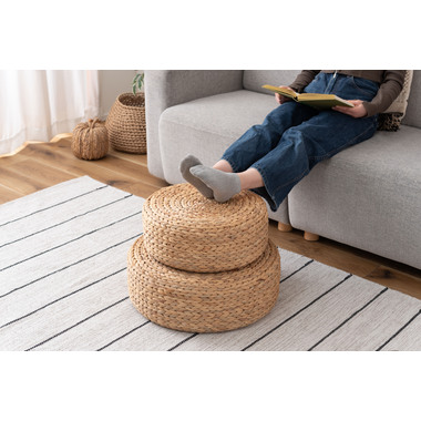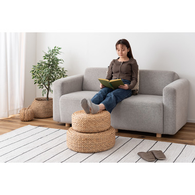 天然素材を活かした、ぬくもりのあるロースツール。丁寧に編み込まれており、一つ一つ表情が異なるところが魅力的です。カジュアル過ぎない、優しい雰囲気がお部屋に温かみを与えてくれます。