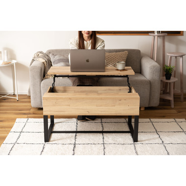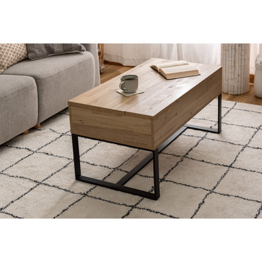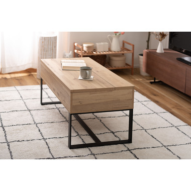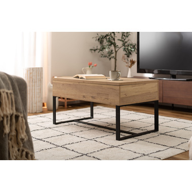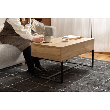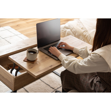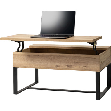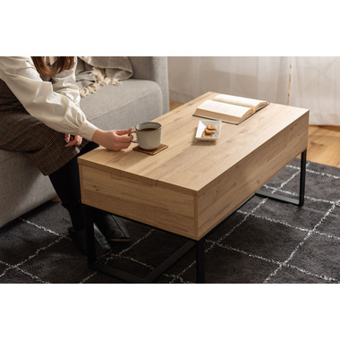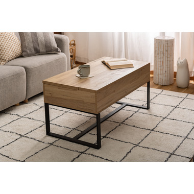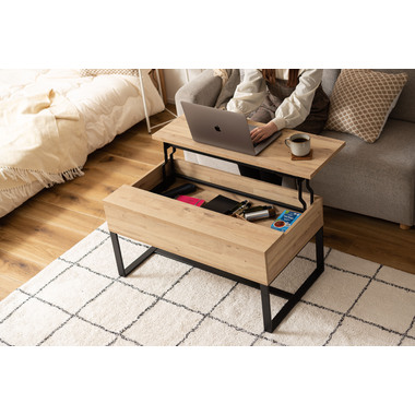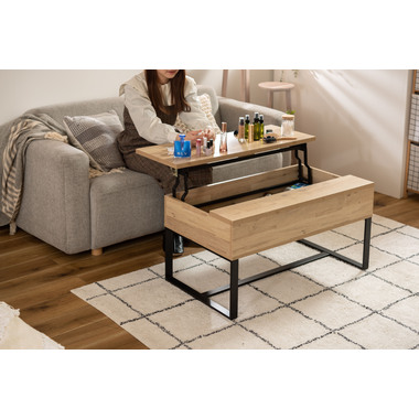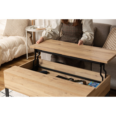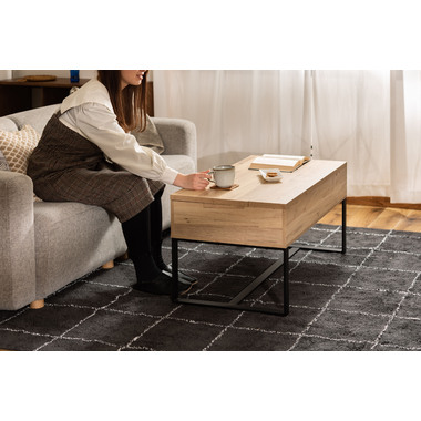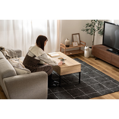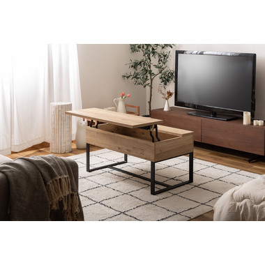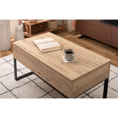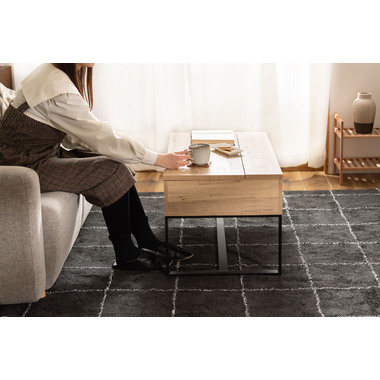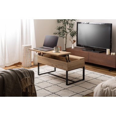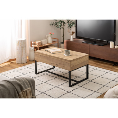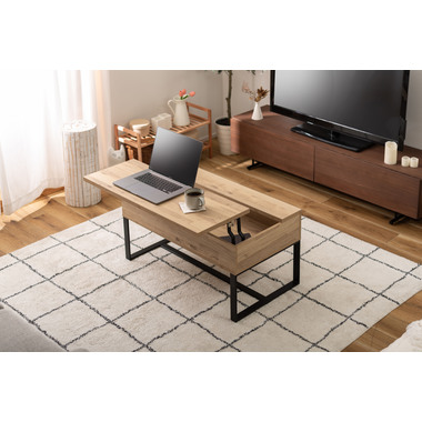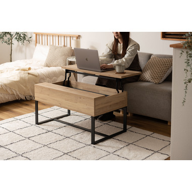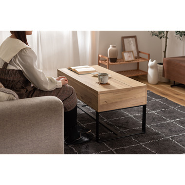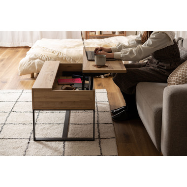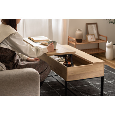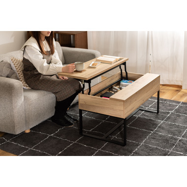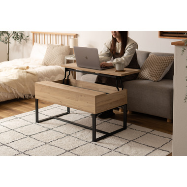 ●ソファ前に置いたセンターテーブルが簡易デスクに!便利な2Way仕様のセンターテーブル。●普段はソファ前に置いて通常のセンターテーブルとして使用。●ノートPCやタブレット等でちょっとした作業を行なう時は、天板を持ち上げれば簡易テーブルに早変わり。●テーブル本内の中は収納スペースになっているので、雑誌やリモコン、ノートPCやタブレット等を収納しておくことができます。●落ち着いた色合いと綺麗な木目の強化プリント紙を使用しているので、様々なインテリアに合わせやすくお手入れも簡単です。●脚フレームにはスチールを使用しているので、安定感があり安心してお使いいただけます。●在宅ワークやリモートワーク用の簡易デスクとして、くつろぐ時のリビングテーブルとして様々なシーンで使える2Wayテーブル。