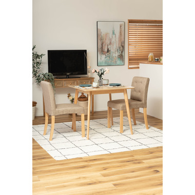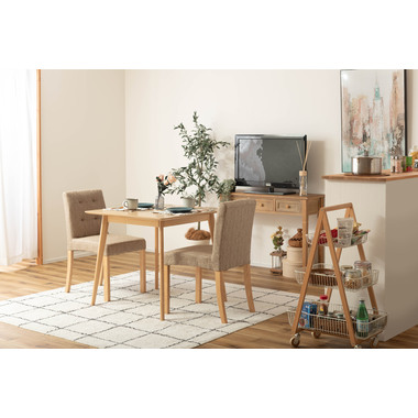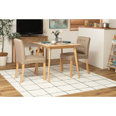 ●どんなインテリアにも合わせやすい、シンプルなスクエアテーブル。●省スペース向けのサイズながら、2人使いでもゆったりと食事ができる80角サイズ。●北欧風テイストの脚がハの字に広がるスッキリとしてデザインなので、どんな種類のチェアとも組み合わせやすいテーブル。●天板下の幕板は天板の反り止めや脚のグラつきを最大限抑え、テーブル全体に安定感を持たせてくれます。●ホワイト・ナチュラルどちらも、天板の表面は凹凸のない木目調仕上げ。●小口部分はデザイン性の高い船底形状。シャープですっきりとした印象なので、木製チェアからスチール素材を使ったチェアまで幅広く合わせられます。●脚裏にはフェルトが付いているので、床への傷防止にもなり安心です。