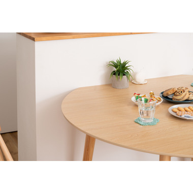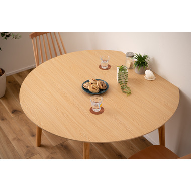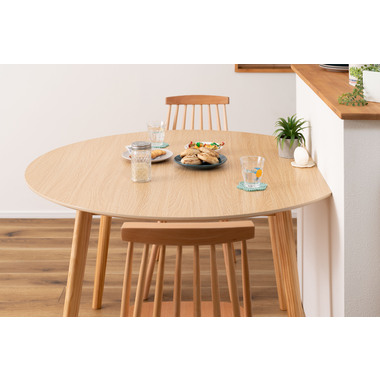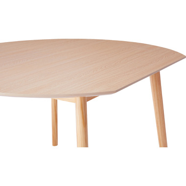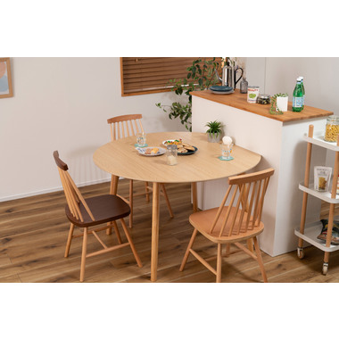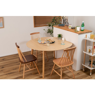 ●キッチンカウンターや壁面に合わせて使用できる変形テーブル。●省スペースでも、ラウンドタイプのテーブルとして使用できます。●4人掛けとして使用にも十分な広さのテーブルです。●天板サイドの小口はデザイン性の高い船底形状。●組立は付属の六角レンチを使い脚を取り付けるだけの簡単組立。●天板表面はNA・WHどちらも凹凸のない仕様。NAは木目調デザイン。WHは単色のきれいな仕上がり。●天板下には幕板が付いているので反り止めにもなり安定した形状。●脚裏にはフェルトが付いているので、床への傷防止にもなり安心です。